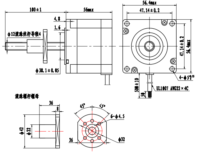 直線步進(jìn)電機(jī)—外驅(qū)式23HS滾珠絲桿標(biāo)準(zhǔn)參數(shù)